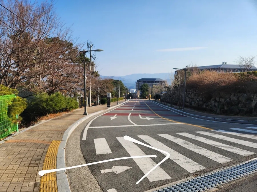 이 코스를 막 벗어나니 바닥에 이런 표시가 보인다.