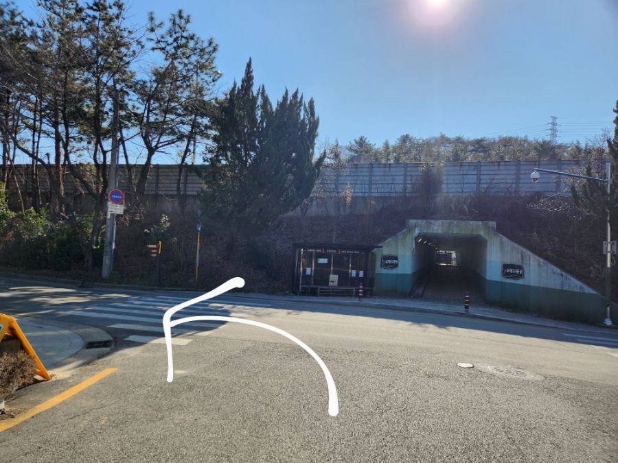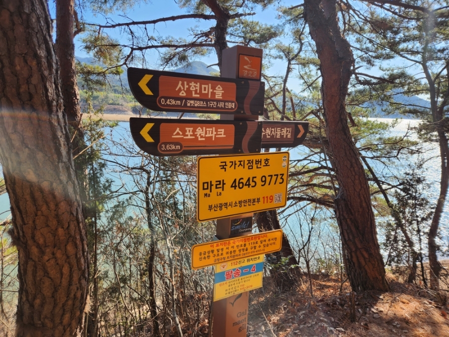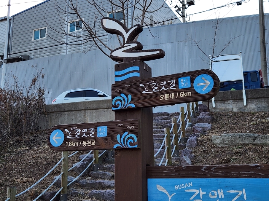 버스 종점인 것 같은데 왼쪽으로 꺾어야 갈맷길이 연속으로 진행된다.