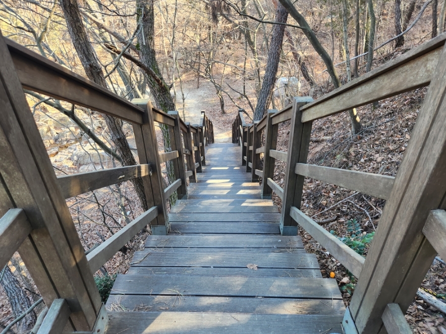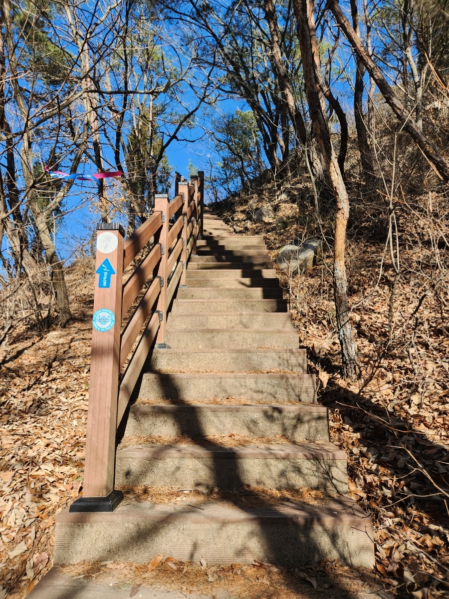 의심하지 말고 계속 앞으로 직진하면 석대다리가 나온다. 왼쪽으로 꺾으면 바로 둘레길 올라가는 길이 보인다. 힘들다면 이 길이 맞는 것임.