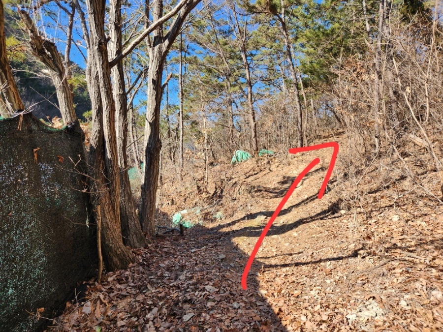전혀 표식도 없고 뭐 딱히 건물도 없어서 알려주기 참 헷갈리는 길이 딱 나왔다. 왼쪽에 보이는 가건물이 나타나면 직진하지 말고 반드시 오른쪽으로 올라가야 한다.