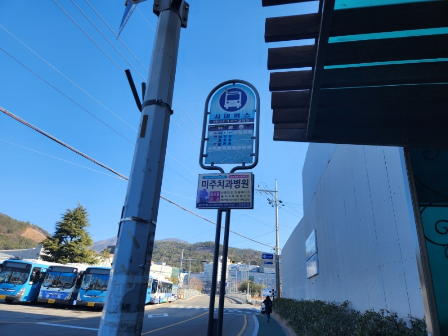 회동동 99번 종점에 내리면 바로 버스들이 즐비한 것이 보인다.